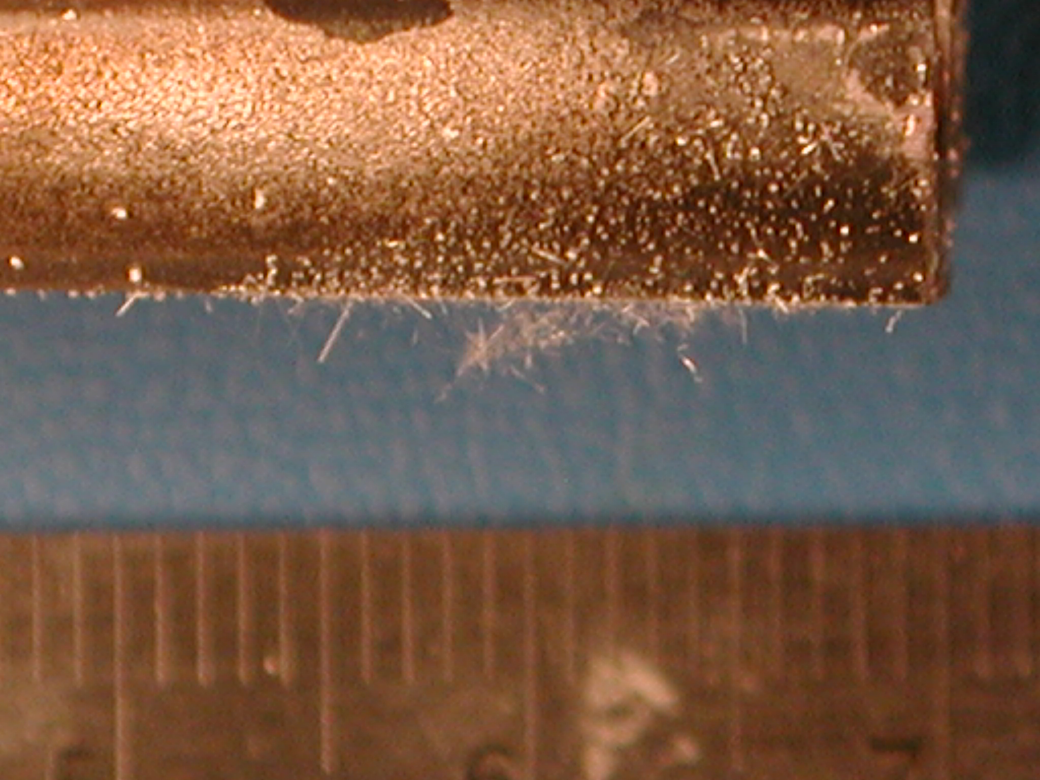 이 위스커는 전도성을 가지고 있어, 의도치 않게 작은 아킹 사고 또는 단락 사고를 만들어 낼 수 있음.